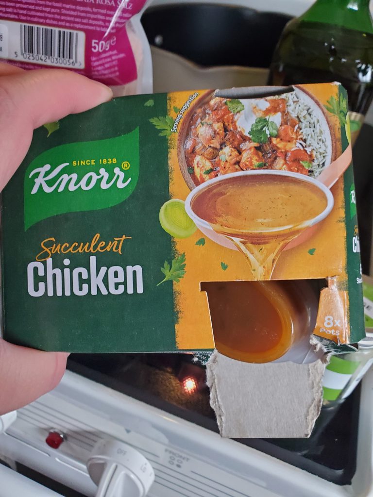 STEP THREE: Plop in the little jiggly chicken stock for flavor and nutrients.